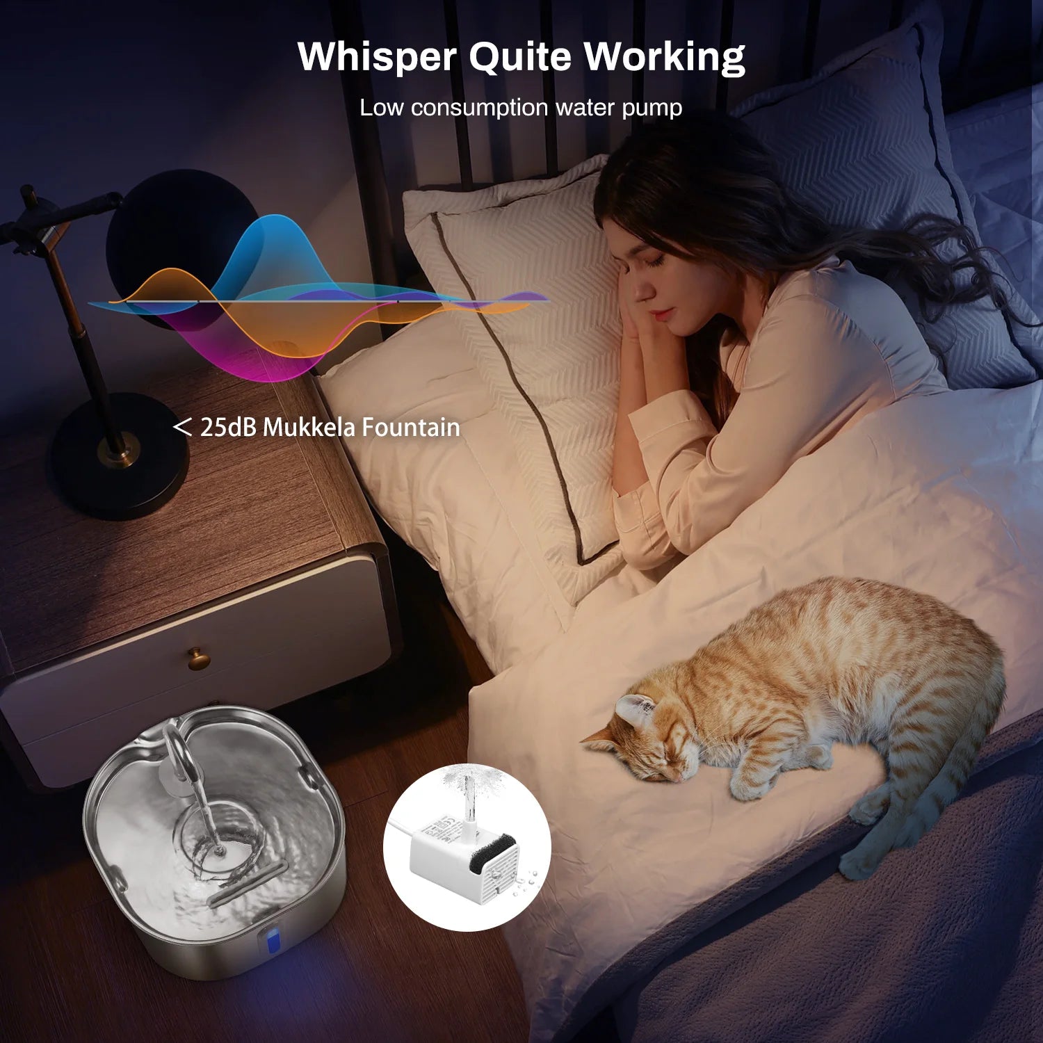 Refresh your cat's world with the Hign-concerned Stainless Steel Cat Water Fountain—with multi-filter LED, whisper-quiet operation, and easy maintenance.