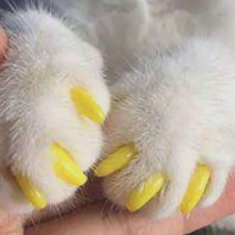 - 20-piece soft silicone nail caps in vibrant colors with free adhesive glue for quick, complete coverage that lasts through weeks of scratching and play.