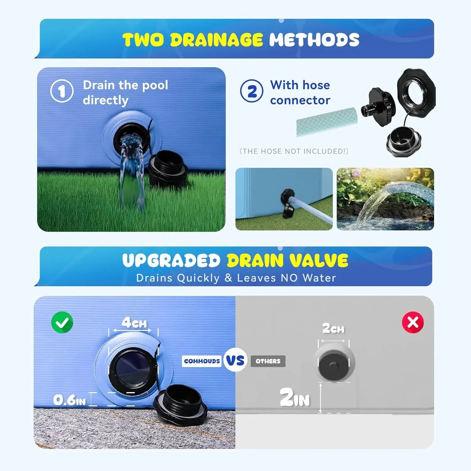 - You benefit from effortless drainage: 0.2 inches from the bottom, a 0.8-inch valve, and hose adapter to redirect water and prevent flooding.