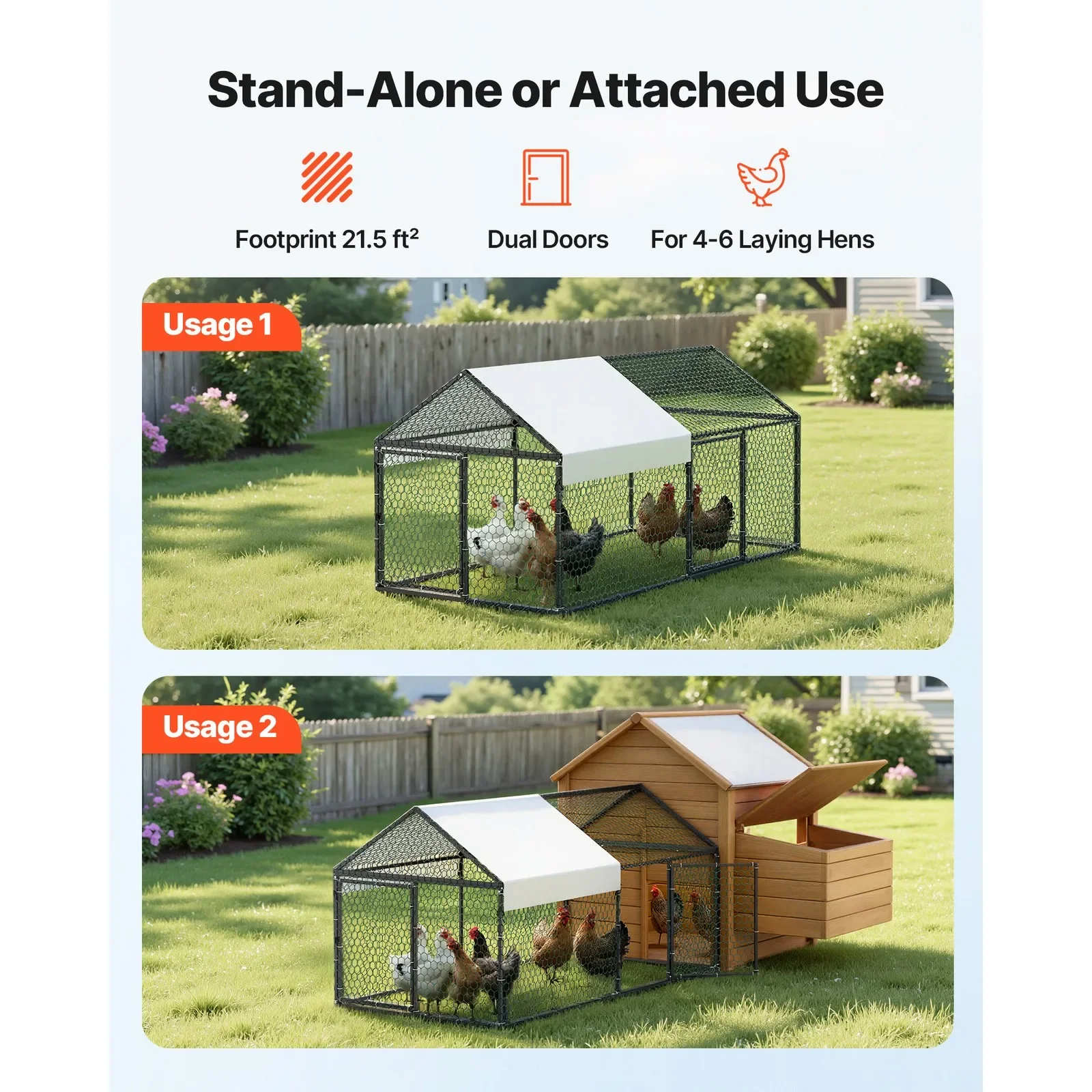 - Two doors offer flexible access for cleaning, feeding, and egg collection, so you can manage your flock with minimal stress.