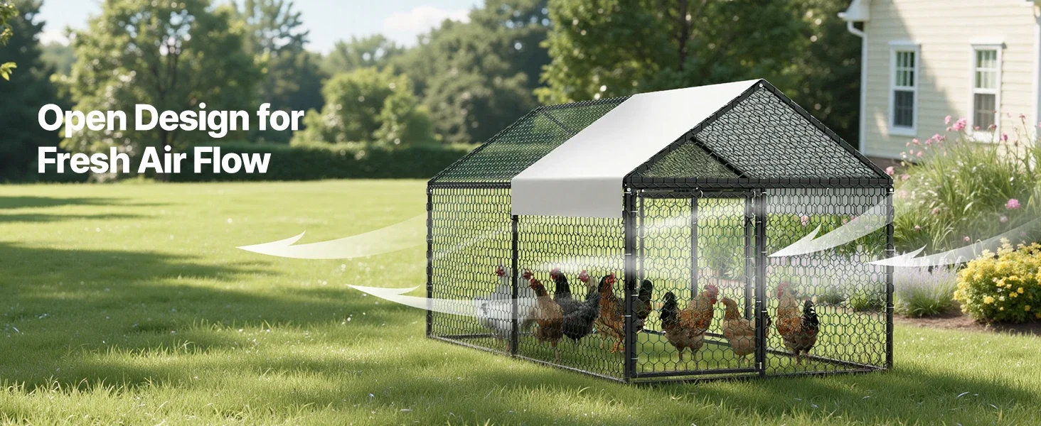 Protect your flock in all weather with a sturdy metal chicken coop built for 4–6 birds and a weatherproof PE canopy.