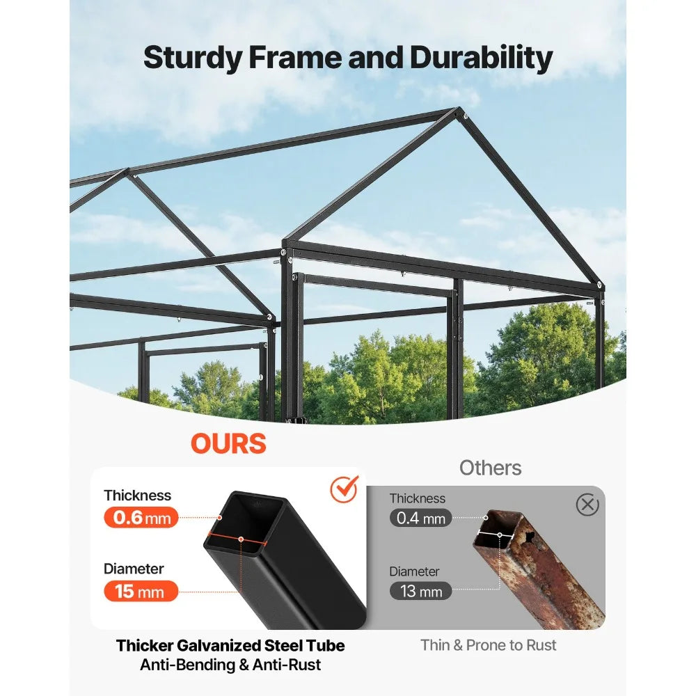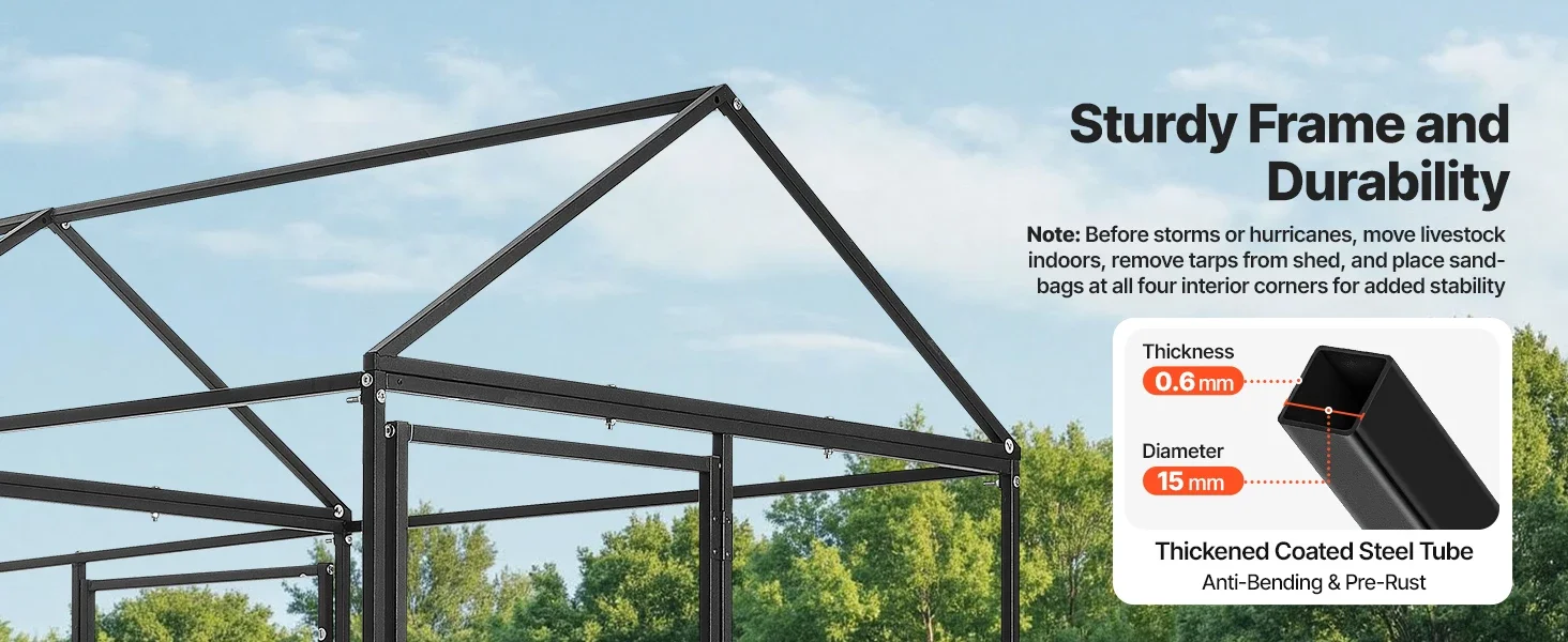 - Built with a robust iron frame and a coated carbon-steel backbone, this coop resists rust and weathering, so you can rely on it through windy days.